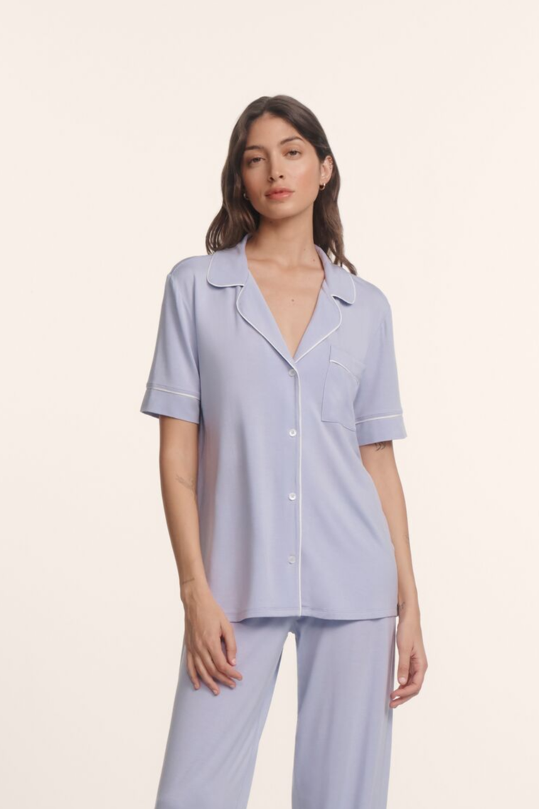 In the mid-2000s, we embarked on a mission to design the world’s softest pajamas for the perfect night’s sleep. The Gisele collection delivers on this promise, blending a timeless men’s pajama-inspired design with sustainable TENCEL™ Modal fibers. Our luxurious, temperature-regulating knit fabric drapes effortlessly, offering unmatched comfort. It’s also machine washable and gentle on the skin, combining beauty with practicality. The longer short sleeves provide modest coverage while ensuring ease during your morning and evening routines.