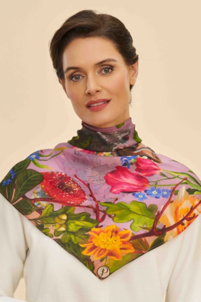 100% Silk Whimsical Woodland Scarf