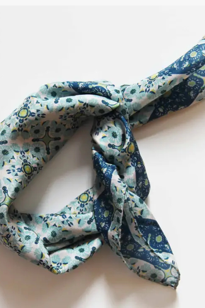 100% Silk Square Scarf/Mini Alice/Bleu, Bleu