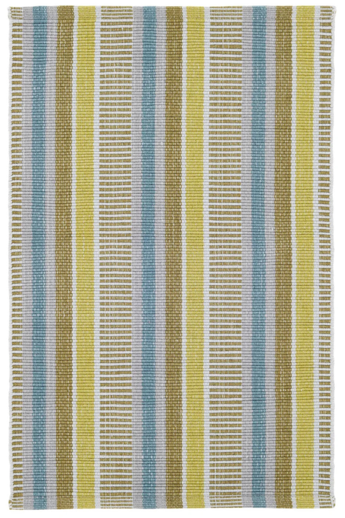 Ana Ticking Aqua Machine Washable Rug