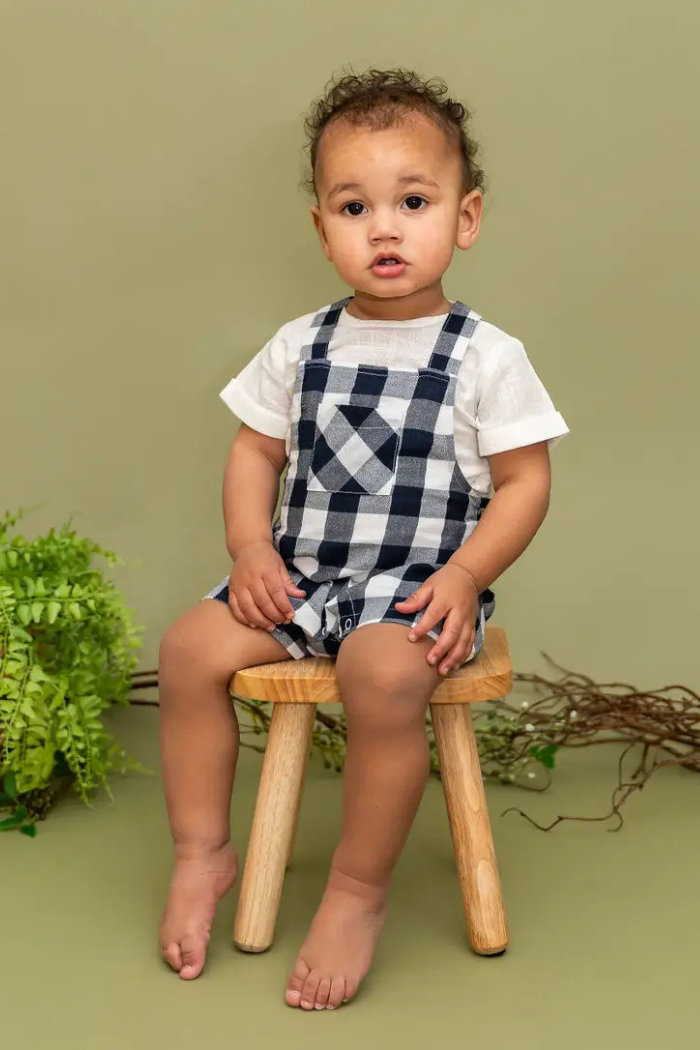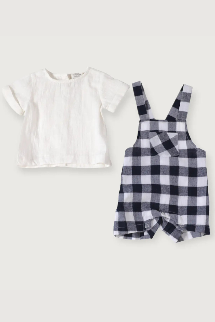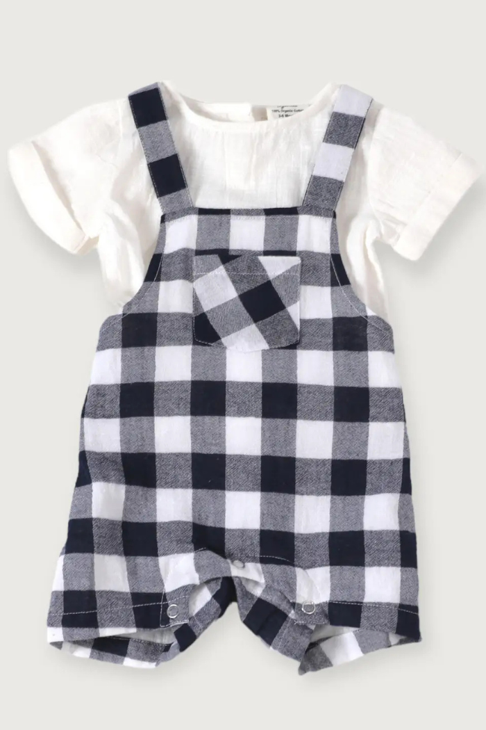 Soft Organic Cotton Raphael Checker Gingham Romper + Shirt Set (Organic Cotton)