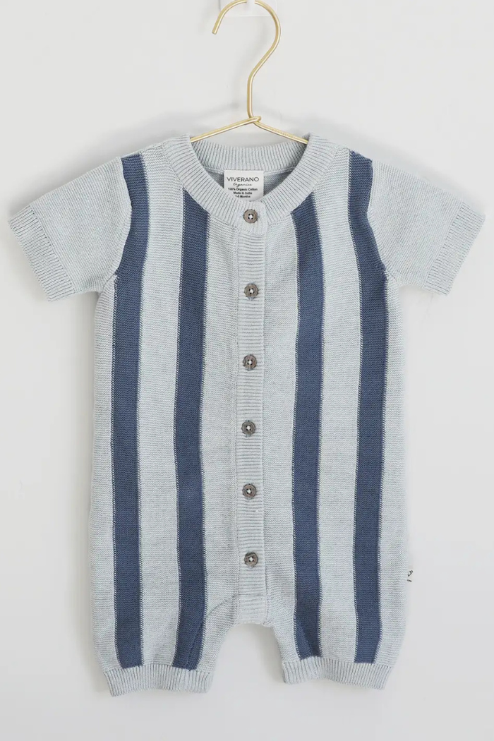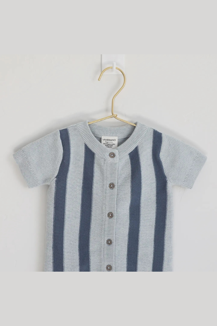 Stripe Knit Classic Button Baby Romper (Organic Cotton)