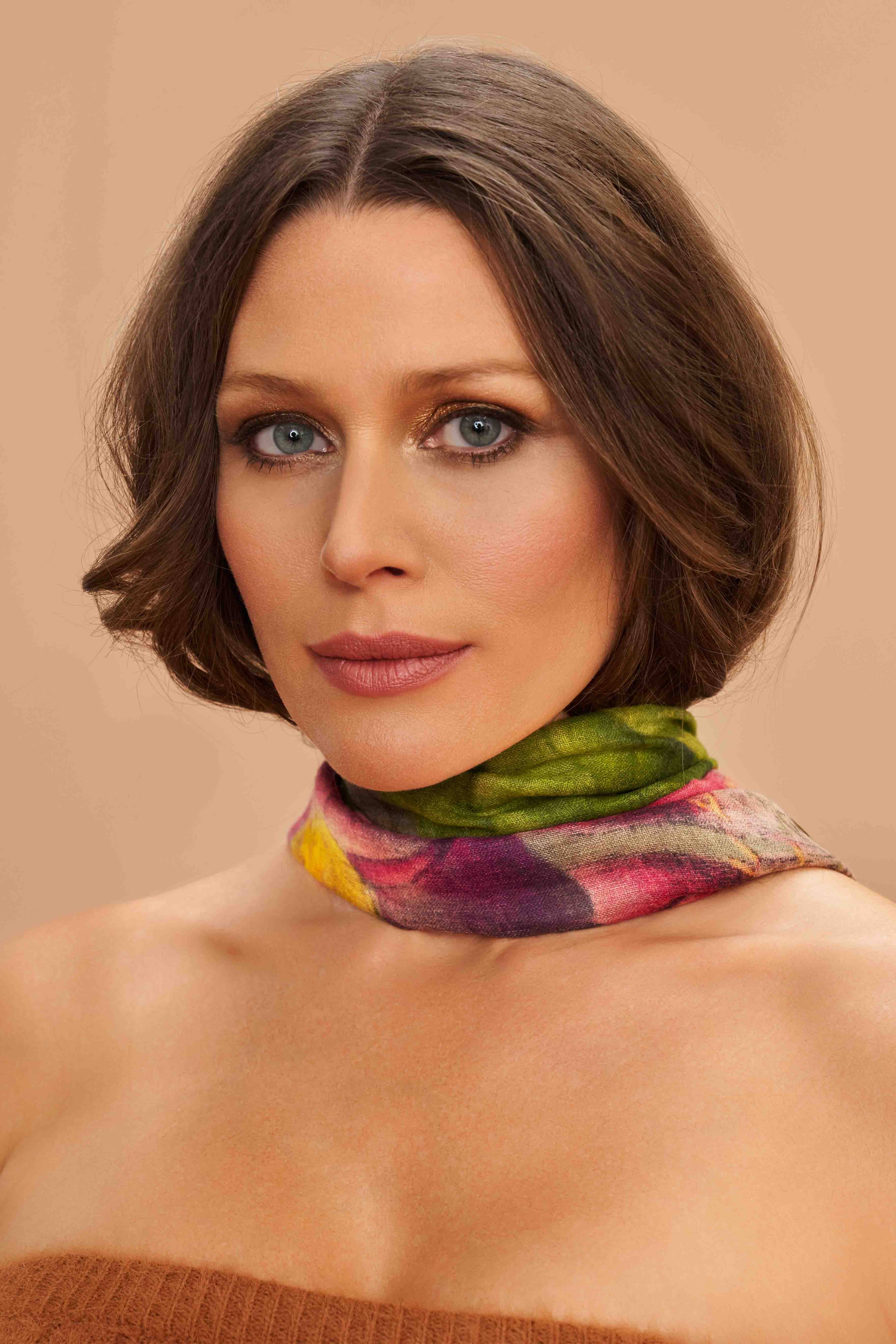 Wool Wrap Oversized Botanicals Scarf Orange flowers
