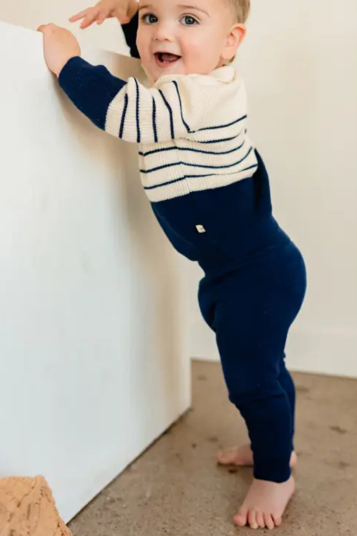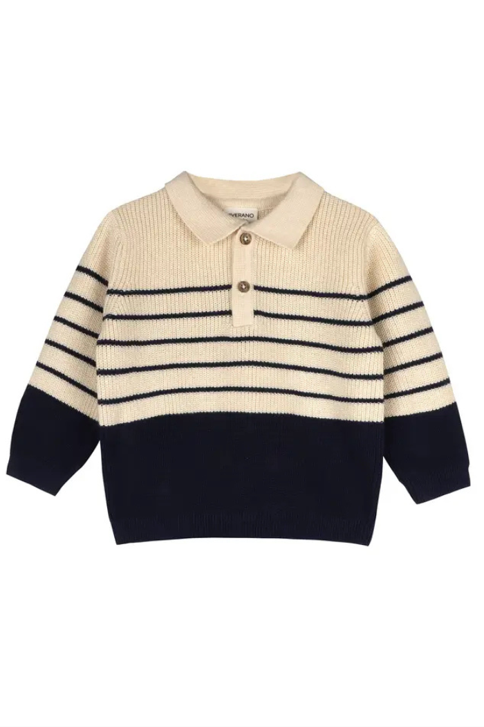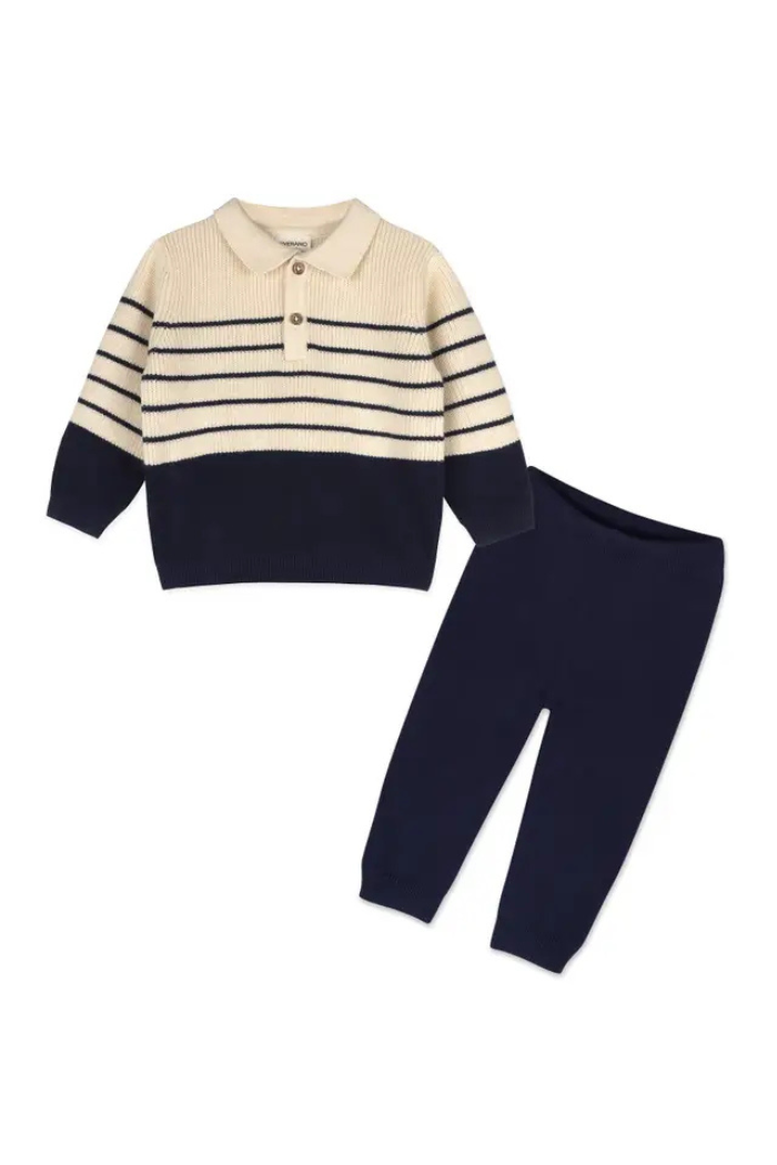 Classic Stripe Polo Sweater Knit Baby Pullover & Pant Set