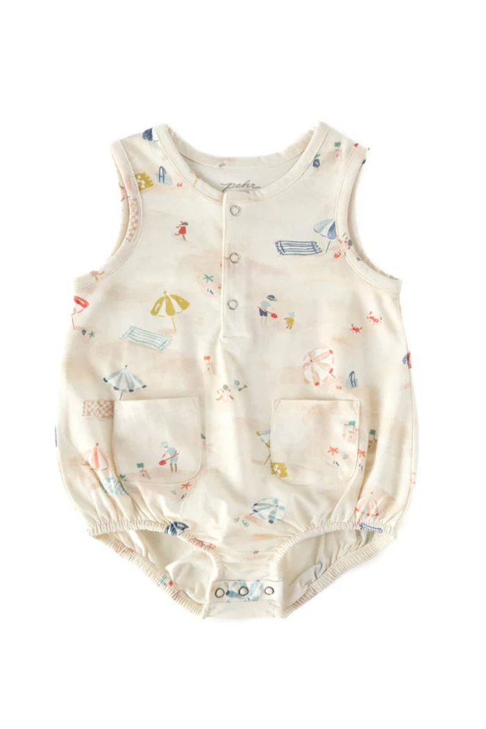 Whether for a backyard picnic or trip to the beach, our Sleeveless One-Piece offers a relaxed, billowy fit to keep baby comfortable. Made from organic cotton with the cutest two pockets, the front placket and bottom snap closures make for easy on and off the whole day through.