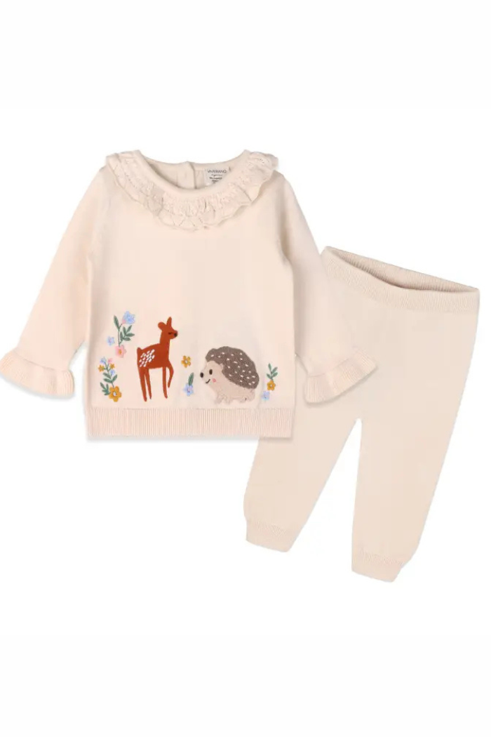 Woodland Embroidered Sweater Knit Baby Pullover & Pants Set