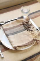 Brown Cream Nomad Turkish hand towel from Home & Loft, handwoven by skilled artisans on the coast of Turkey. Also known as a pestemal — lightweight, quick-drying, and gets softer with every wash.