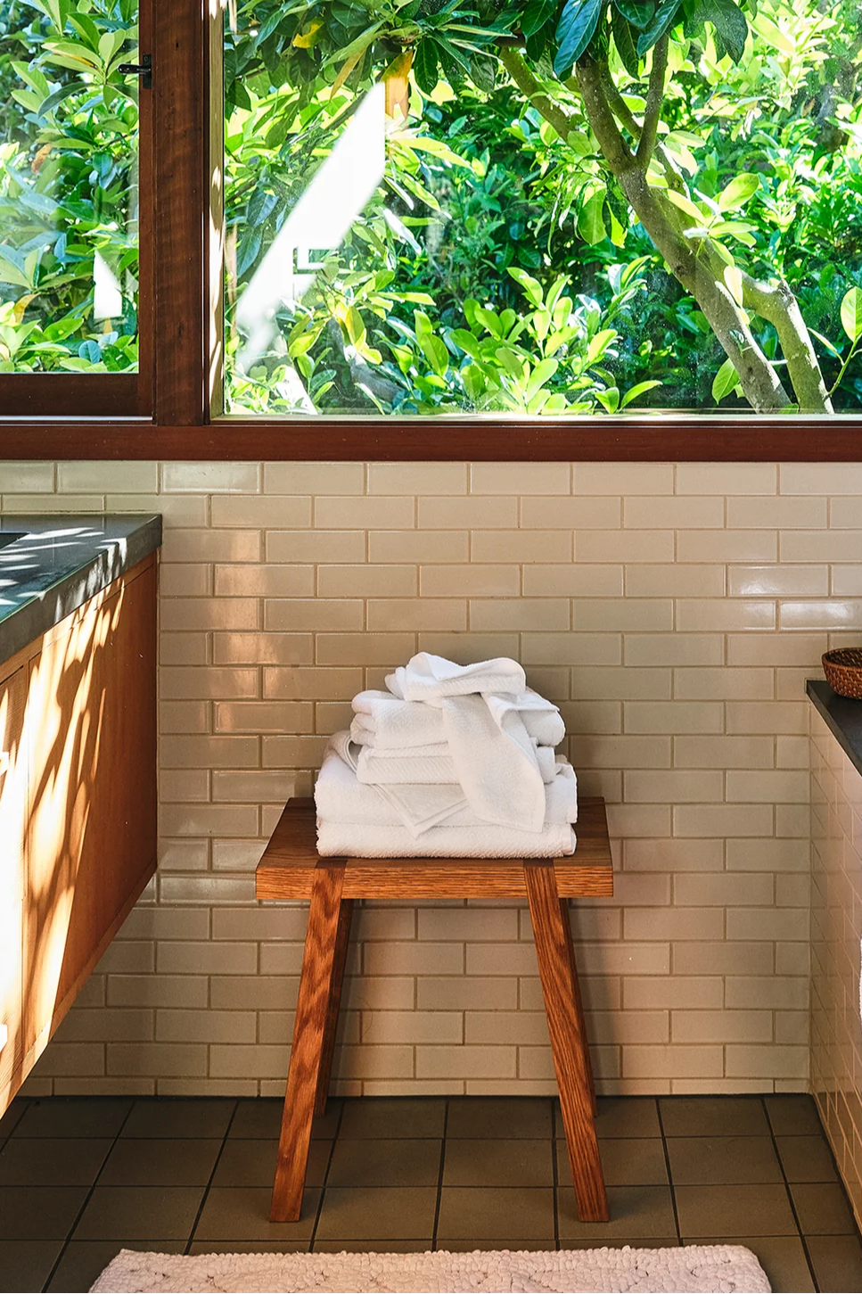 Hand towels traditionally hang from a bar or hook, while guest towels (also called “fingertip towels”), are smaller and tend to be displayed on the countertop.