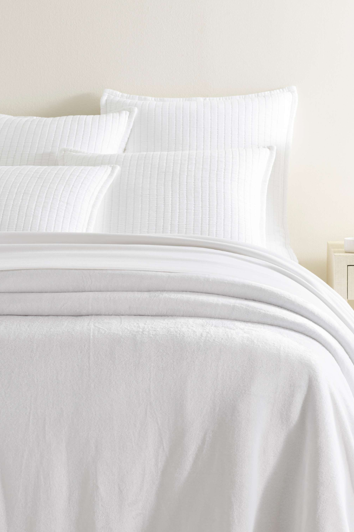 We took our classic, cozy fleece and upped the snuggle quotient with a microfiber knitting and polishing technique. It's the silkiest, drapiest fleece blanket you'll ever try, in bright white. Go ahead--get cozy!