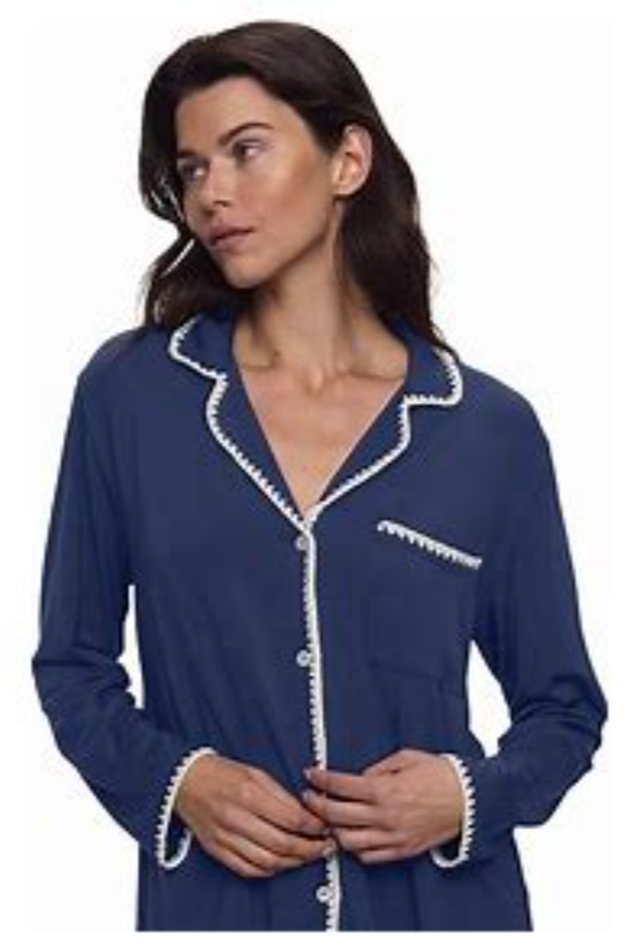 Frida TENCEL™ Modal Long PJ Set Navy Ivory Stitch