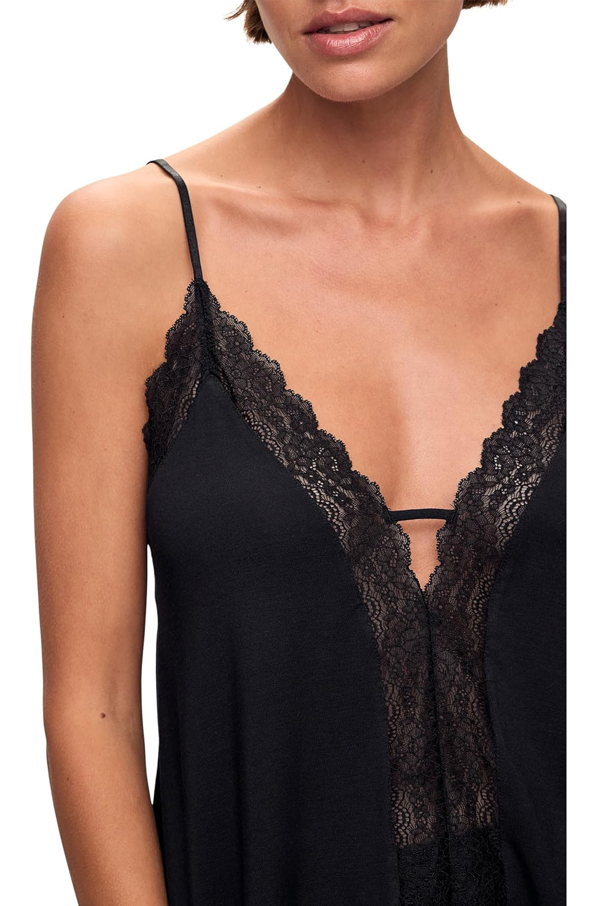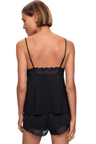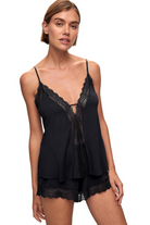 A lightweight cami-and-short sleep set with delicate lace trim and a relaxed silhouette, perfect for lounging at home. The Eberjey Cami Short Set is crafted from soft knit with lace accents along the neckline and hem for a feminine finish. Eberjey Intimates brings a cozy, effortless vibe to your nightwear with adjustable thin straps and easy pull-on shorts. This set balances comfort and romantic style for sleep or low-key mornings.