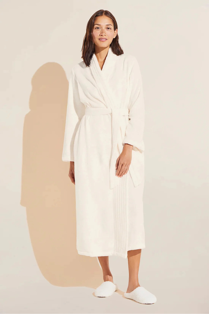 This ultra-cozy Chalet Eco Plush Robe redefines pampering. Crafted from plush fabric made with nearly 80 recycled plastic bottles, it’s gentle on both skin and the planet. Perfect for chilly nights, hot tub outings, or fireside lounging, it transforms daily routines into relaxing rituals. Layer over Eberjey sleepwear or loungewear for ultimate comfort. Ideal for home or winter getaways!