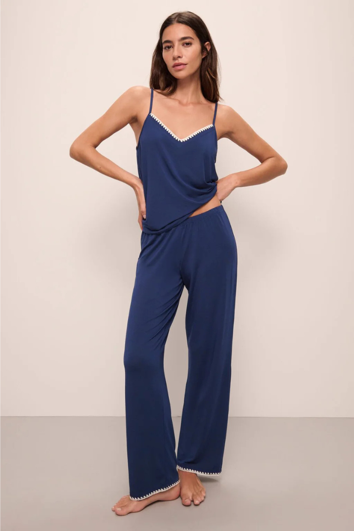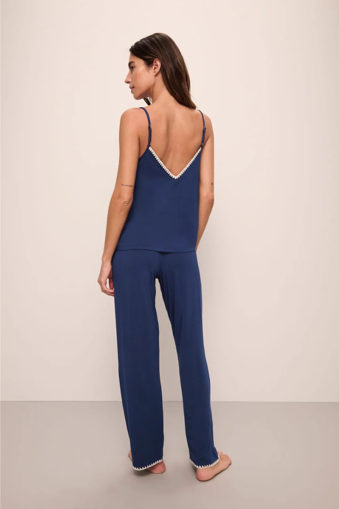 The relaxed-fit cami has a V-neck front and back with adjustable straps, while the mid-rise pant offers comfort with its elastic waistband. Pairs perfectly with the Ivory Mia Bralette and Brazilian.