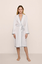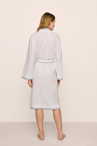 Linen Blend Long Sleeve Robe White/ Navy Trim