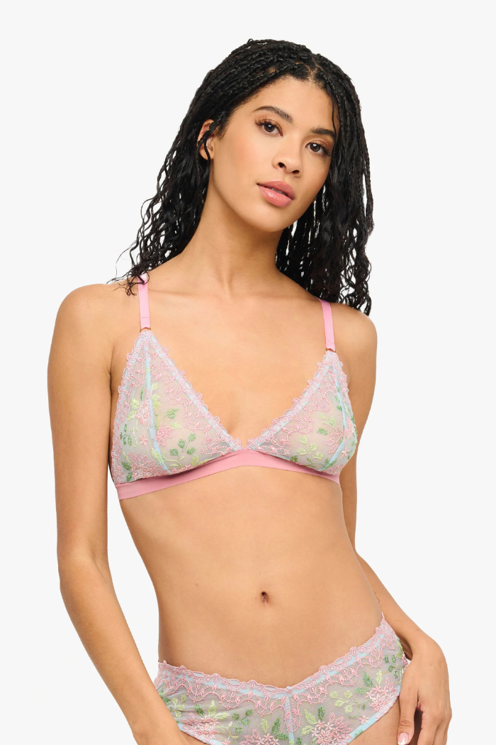 Inspired by India, Usha is a tribute to a matriarch in the family behind Cosabella. Carefully selected lace and mesh come together in a truly luxurious collection. Crafted from fine, structured Italian lace, the design creates a captivating visual effect. Subtle woven pops of color stand out against a neutral base, blending softness with sensuality.