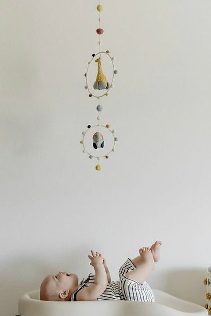 Giraffe & Elephant Wool Hoop Ceiling Mobile