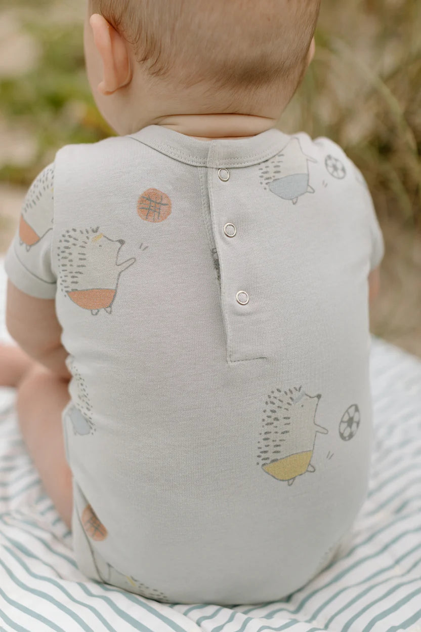 With a snap back closure and bottom snaps for easy changes, the Short Sleeve Lap Shoulder One-Piece is made in our signature 100% organic cotton jersey to be lightweight and breathable with a slim fit. Perfect for ‘Pehr’-ing, add this piece to their summer wardrobe.
