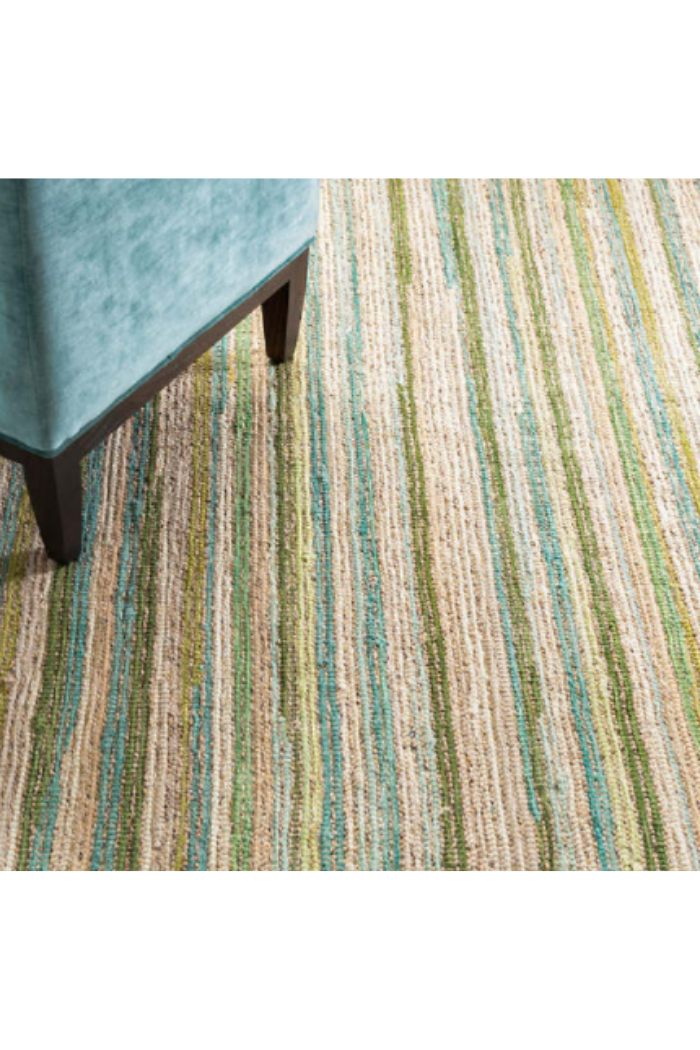 A corded Chindi-style chenille stripe in shades of Evergreen, Moss, Juniper, Seaglass, Sky, Chartreuse and Ivory, updates our collection of hardworking cotton flatware rugs with a new twist. Versatile, affordable, durable, and soft underfoot, this refined stripe is ready to add a fresh dose of happiness to any floor in your home.