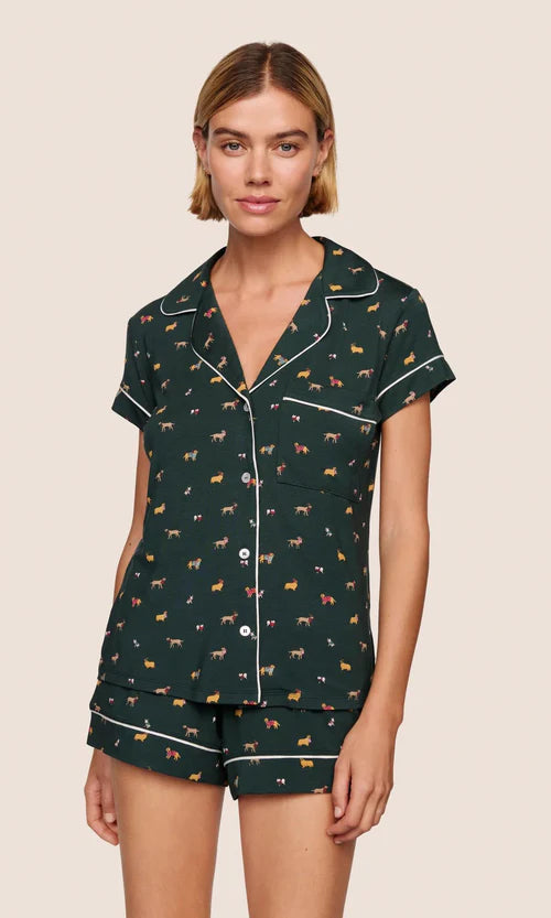Gisele Printed TENCEL™ Modal Shortie Short PJ Set Holiday Dogs Pine/Ivory