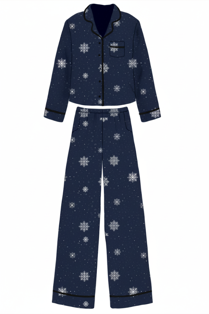 The Grace Long Pajama Set in Martini print is made from an ultra-soft bamboo-blend fabric that’s breathable, gentle on the skin, and designed for everyday comfort. The set includes a classic button-down top with a relaxed fit, long sleeves, and a notch collar accented by delicate ruffled piping for a refined touch. Paired with matching long pants featuring a soft elastic waistband and a straight-leg silhouette, it delivers the perfect balance of ease and elegance for both lounging and sleeping.