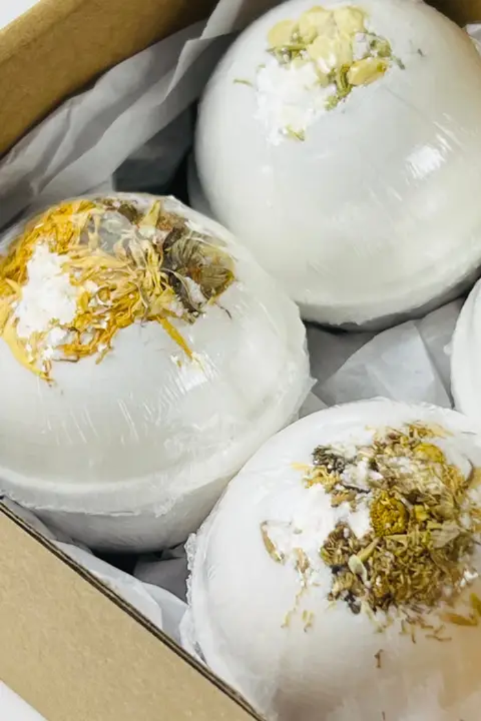 Four uniquely handcrafted bath bombs, each about 2.5oz. Whether you’re looking to relax, or simply soak away the cares of the day, there’s a bath bomb with the aromatherapy scent you need to create the atmosphere and ambiance you’ll love.