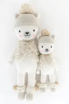 A soft knit bear plush with cozy pom-pom hat and textured vest detailing, perfect for cuddling at nap time. The Knitted Bear Plush Toy is made from gentle knit fabrics and features embroidered facial details for a baby-friendly finish. Its neutral palette and classic silhouette make it an easygoing companion from newborns through toddler years.