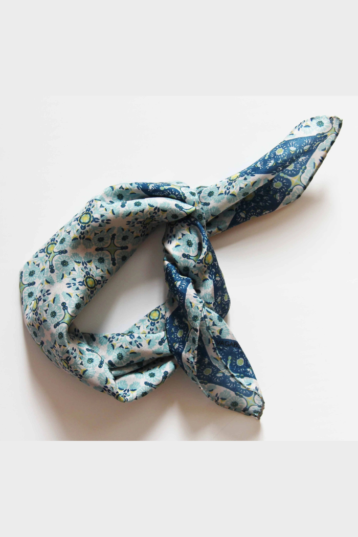 Each scarf is hand-drawn in France and hand-printed in India, showcasing exceptional craftsmanship with a hand-rolled hem. The scarves are packaged in a box inspired by vintage matchboxes for a distinctive presentation.