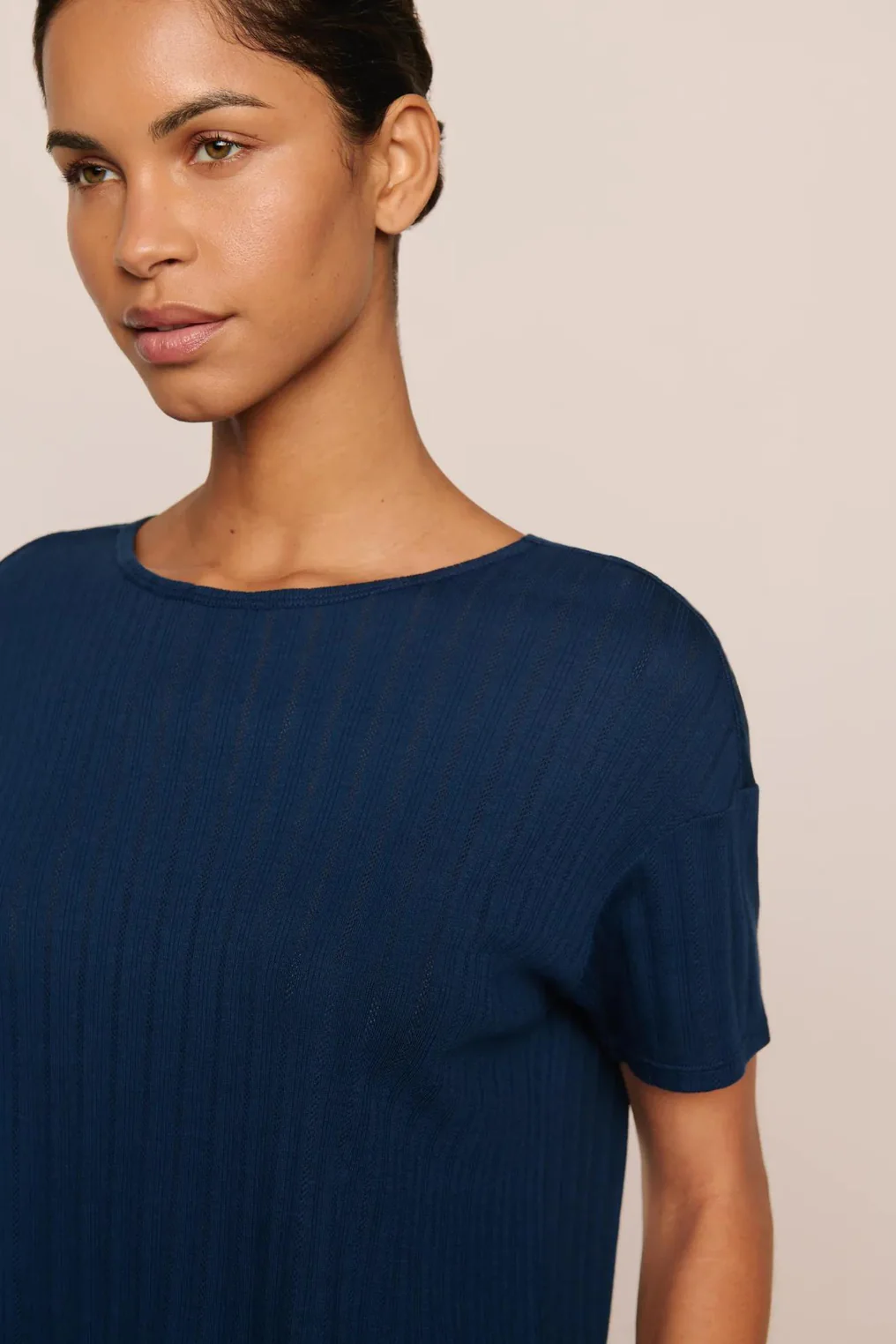 Navy Pointelle Short Sleeve Tee