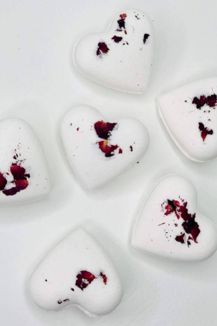 Organic Rose Petals Heart bath bomb and shower steamers is better way to create a romantic atmosphere for your loved ones! Excellent for Birthday! Perfect for bridal shower!!