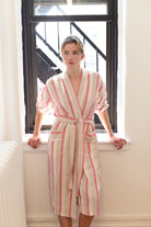 Crafted on the coast of Turkey, our Pink Ivory Montauk Long Robe is hand loomed using traditional techniques and woven with 100% premium Turkish cotton. Similar to a Turkish towel, it is highly absorbent, lightweight, eco-friendly, and quick to dry. Lounge in your robe by the sea or layer it over a lightweight dress. Experience how your robe becomes softer and better with each and every wash!