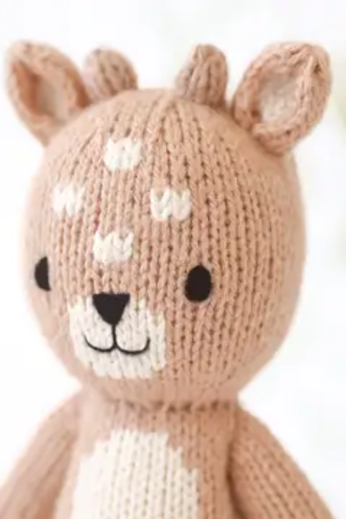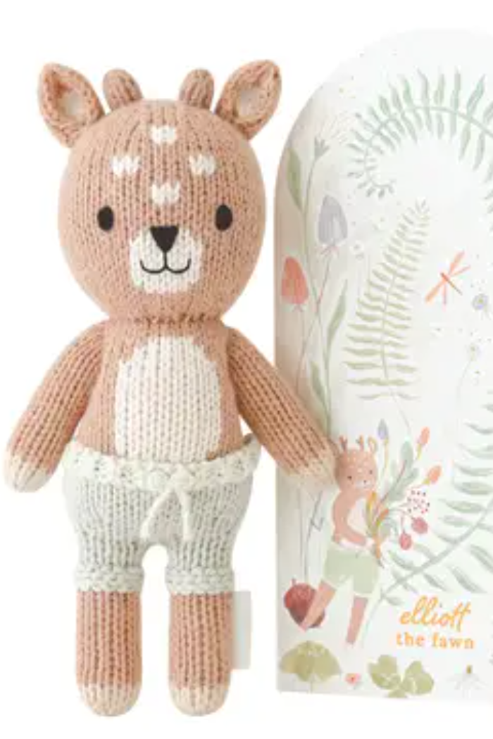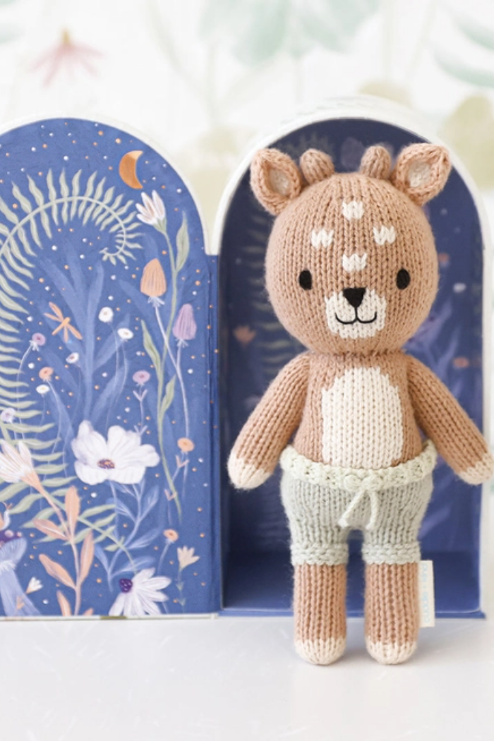 A hand-knit mini plush with sweet embroidered features, Tiny Elliott the Fawn is made for cuddles and imaginative play. This petite fawn has soft yarn construction and removable knit shorts for charming detail. CUDDLE + KIND supports meals for children with each purchase, making this little friend a thoughtful gift choice.