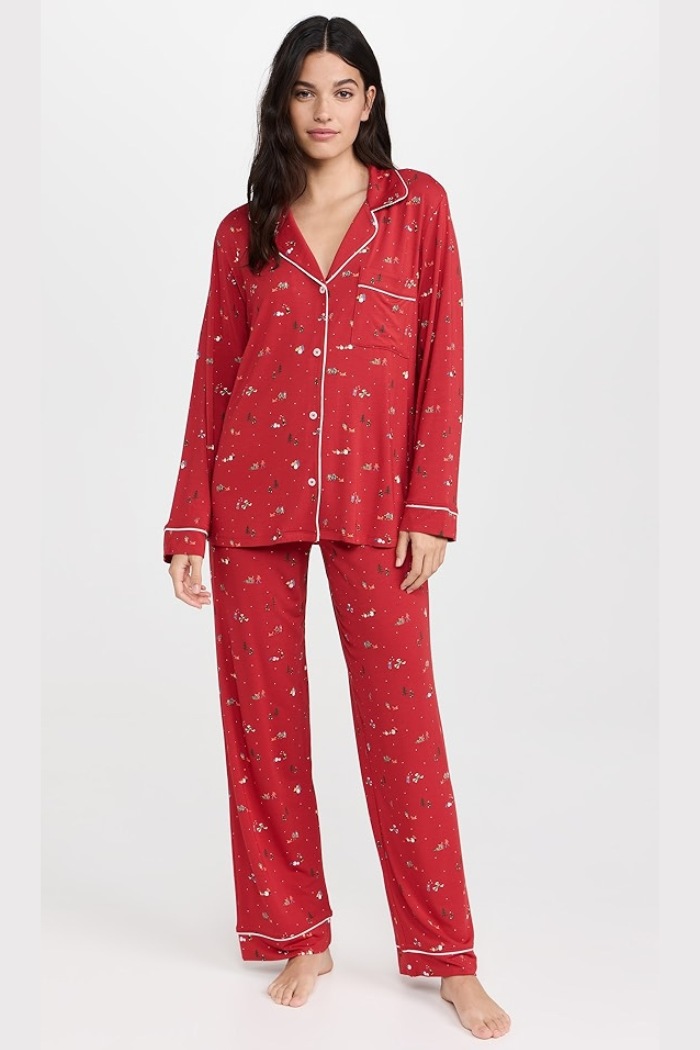 The iconic PJ that started it all. Made from TENCEL™ Modal fibers with a touch of elastane, this incredibly soft fabric is OEKO-TEX® Standard 100 certified, ensuring it’s dyed using safe, non-toxic dyes. This relaxed long-sleeve set features contrast piping, a button-front top with a notch collar and a functional pocket, paired with low-rise straight-leg pants with a thin elastic waistband. For the ultimate blend of comfort and style, pair it with our everyday lingerie.