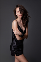 Two pieces pajamas with shorts and a plain top. The minimalistic design and classic color. The most precious fabric. Natural, delicate, and possible to use in many different stylings, not only as loungewear or homeware.