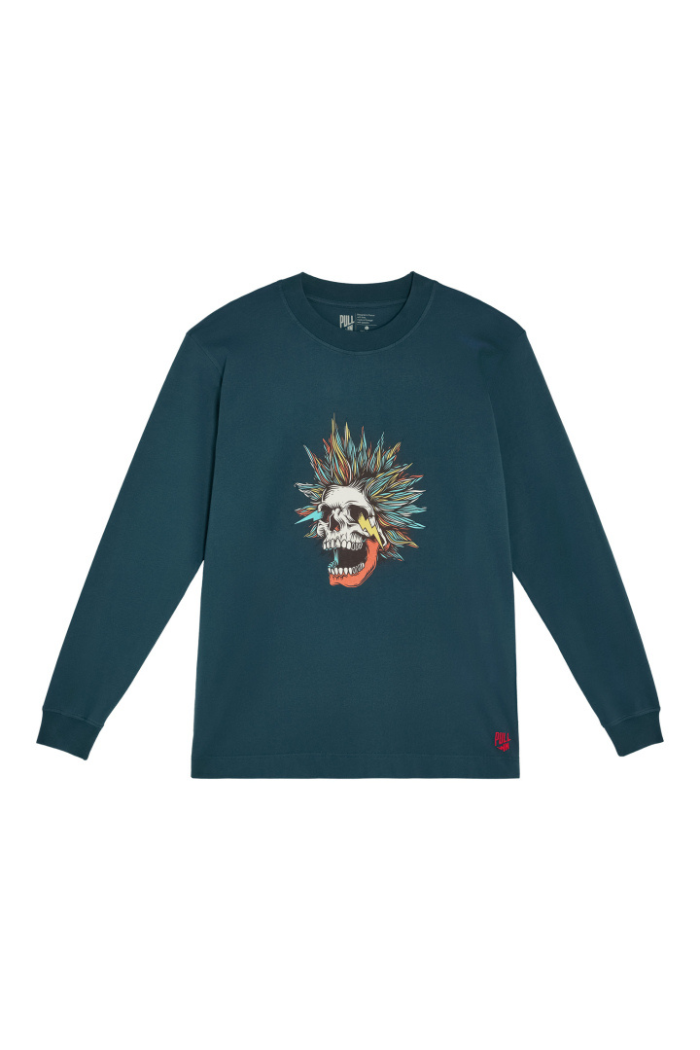 The NEWYORK long-sleeve T-shirt, in a relaxed and loose fit, offers a comfortable oversized style. Made from soft 100% cotton, this green printed tee is perfect for casual wear. Featuring a round ribbed neckline and a flared bottom, this T-shirt combines comfort with fashion. The front and back prints add a touch of boldness to your look. Ideal for pairing with our ultra-stretch DENING® pants.