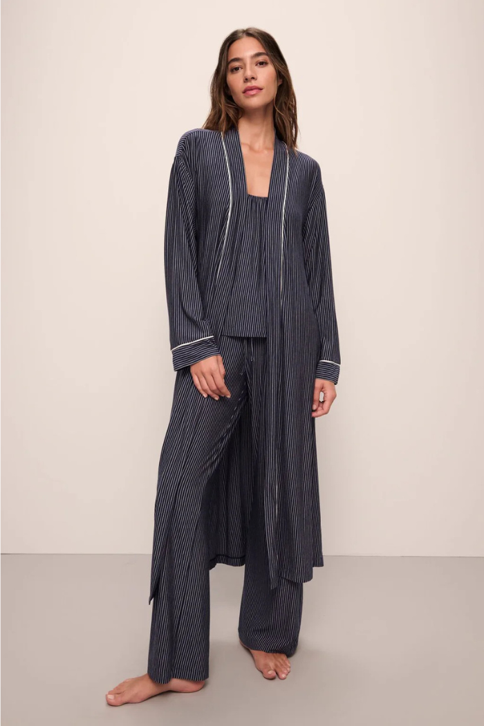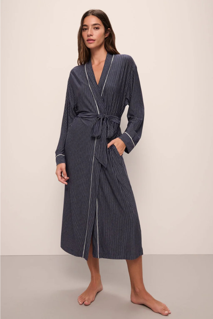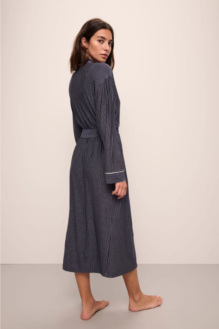 Gisele Printed TENCEL™ Modal Long Robe | Duo Stripe True Navy/Ivory