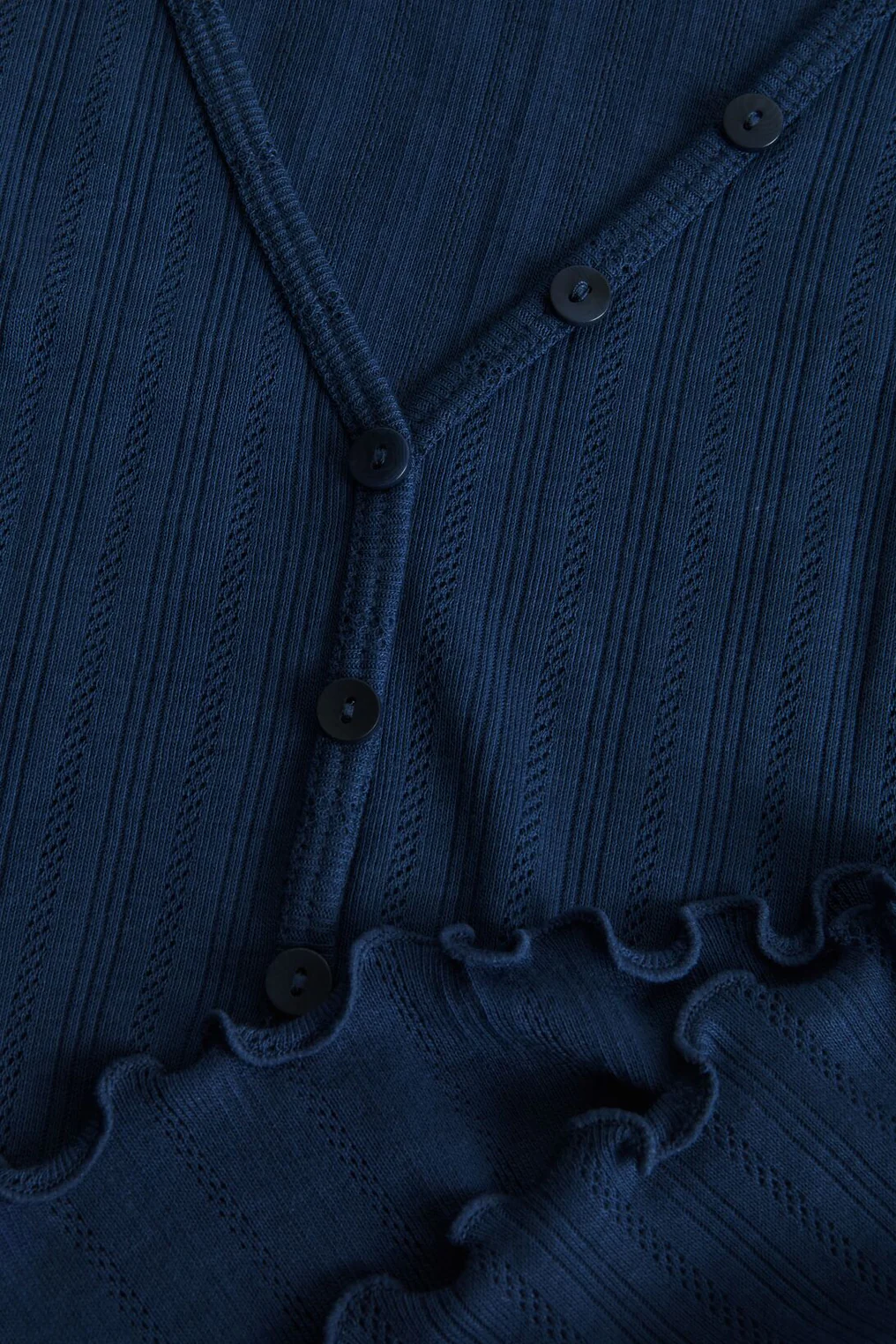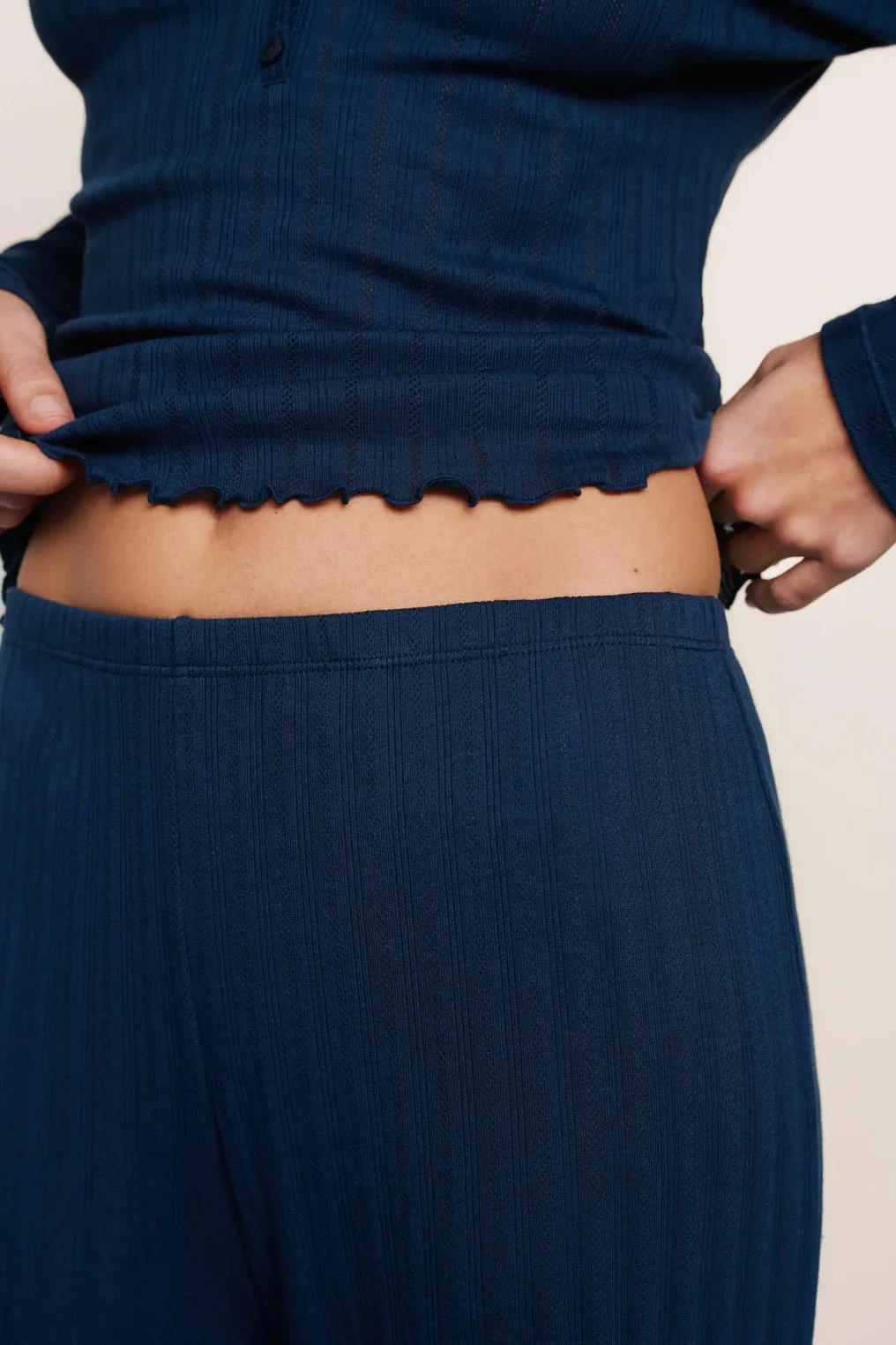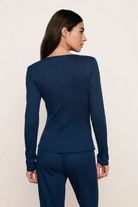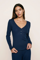 Feel the softness in this feminine, modern collection. Made from breathable Better Pima Cotton and TENCEL™ Modal, this fabric is verified by OEKO-TEX® Standard 100, meaning it was processed without harmful chemicals. The open V-neck long sleeve Henley, featuring natural corozo buttons and a decorative placket, offers a slimmer fit and a flattering lettuce edge hem. Easy to pair with the Pointelle Pant or Nautico Boxer Pant.