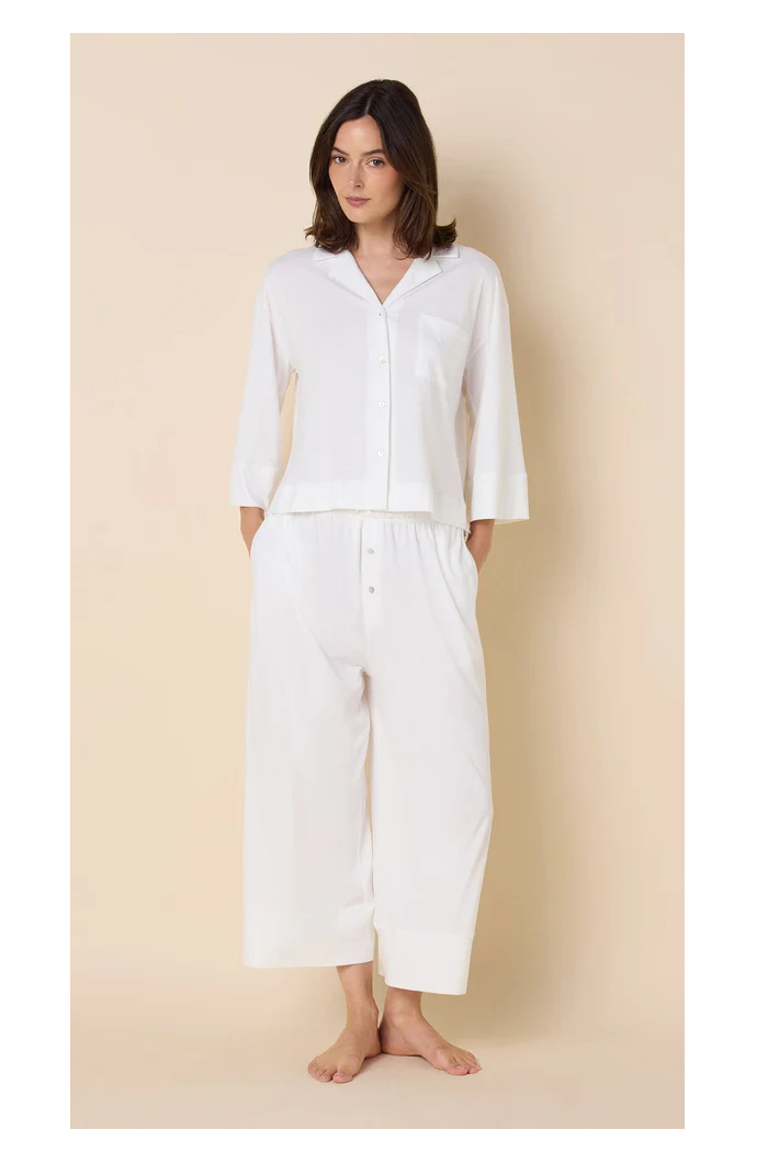 Mariposa printed Pima cotton capri set from The Cat’s Pajamas — supremely soft with a relaxed fit. Machine washable. Made in the USA.
