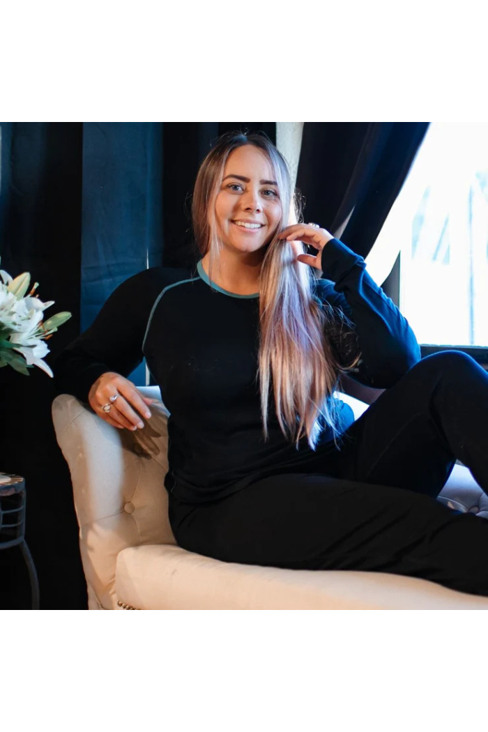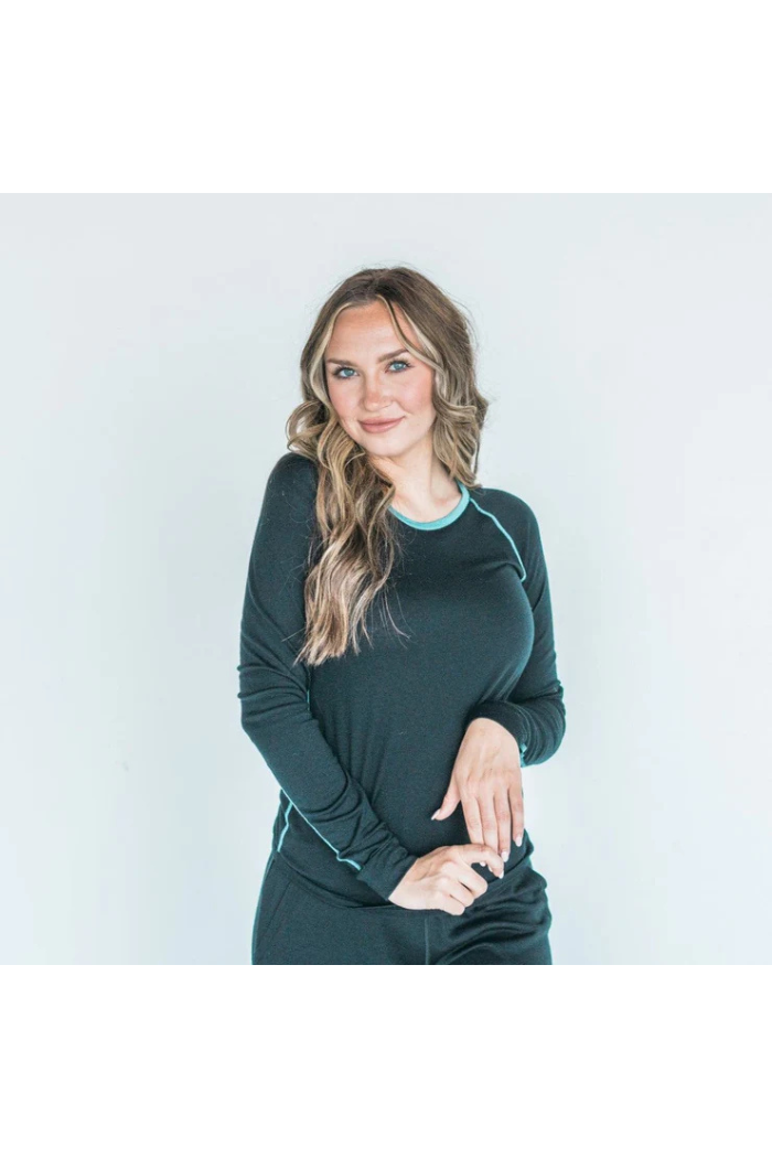 The merino raglan long-sleeve crew is a versatile and stylish piece, perfect as a base layer, sleepwear, or a staple for your casual everyday wardrobe.