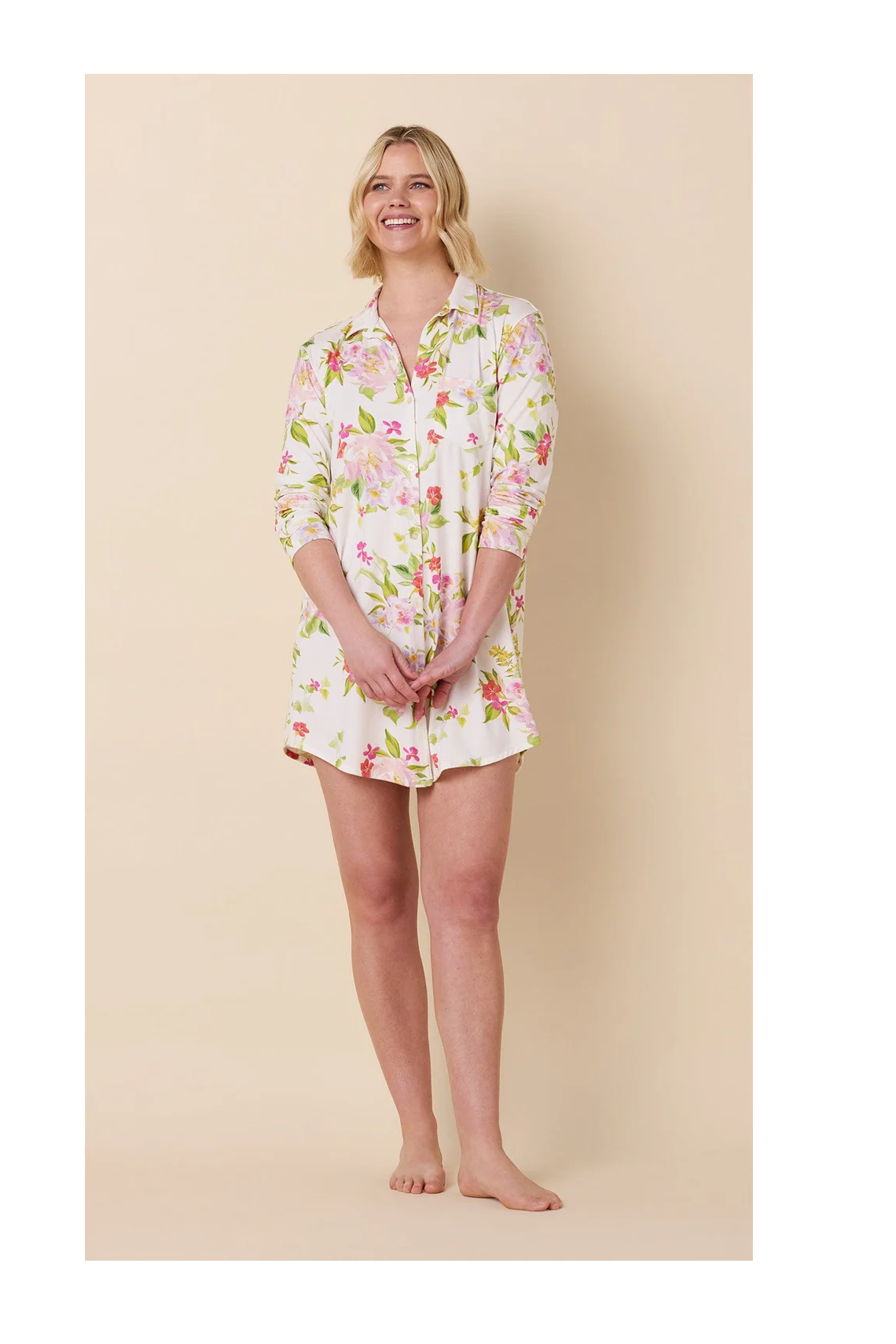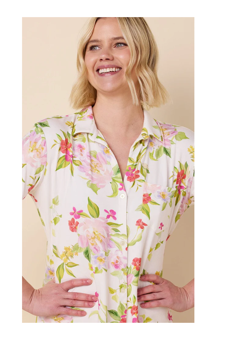 Florentina Pima cotton knit night shirt from The Cat’s Pajamas — soft, roomy, and perfect for sleeping or lounging. Machine washable.