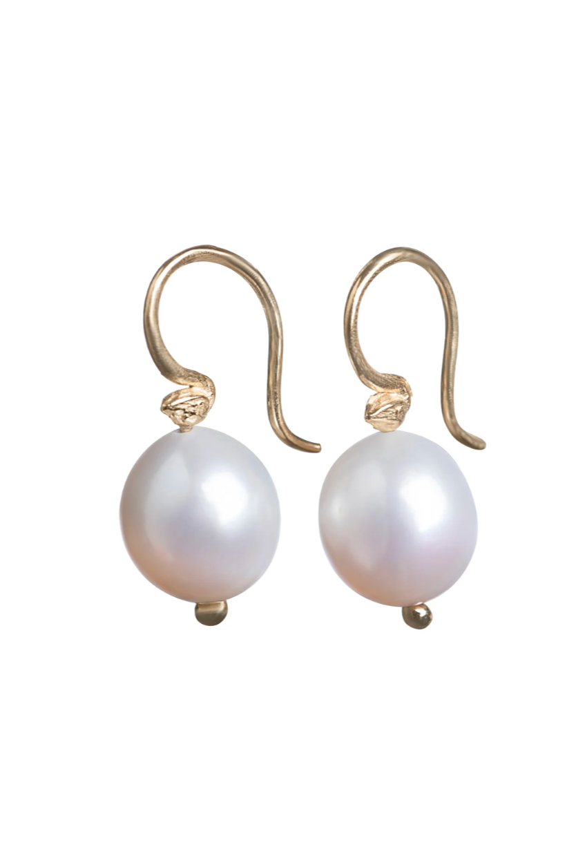 Fresh and bright, the purest white freshwater pearl drops gleam on this earring. A stationary 18k seed earwire setting allows the pearl to shine.