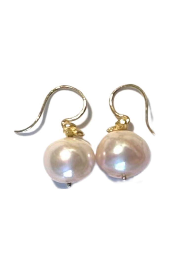 Gabrielle Sanchez Peachy-pink freshwater squatty shaped 11x8mm pearls on 14k triple seed earwire