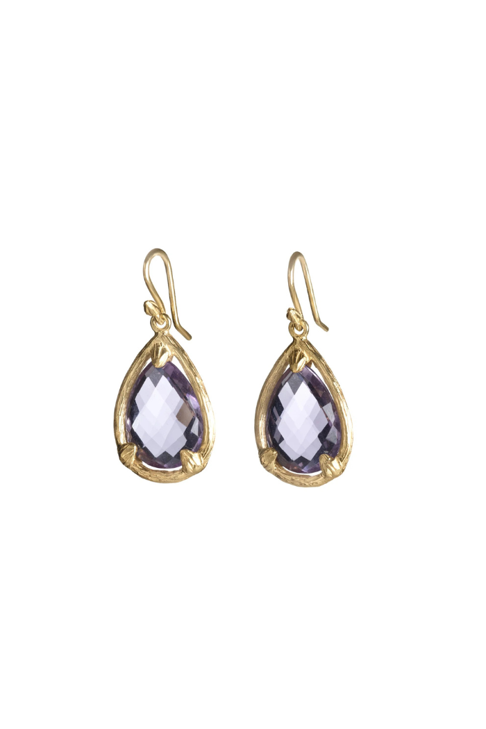 Exquisite lilac teardrops, flawlessly faceted, are elegantly framed in Gabrielle's signature 18k 'classic twig' textured gold frames, suspended from delicate seed ear wires.