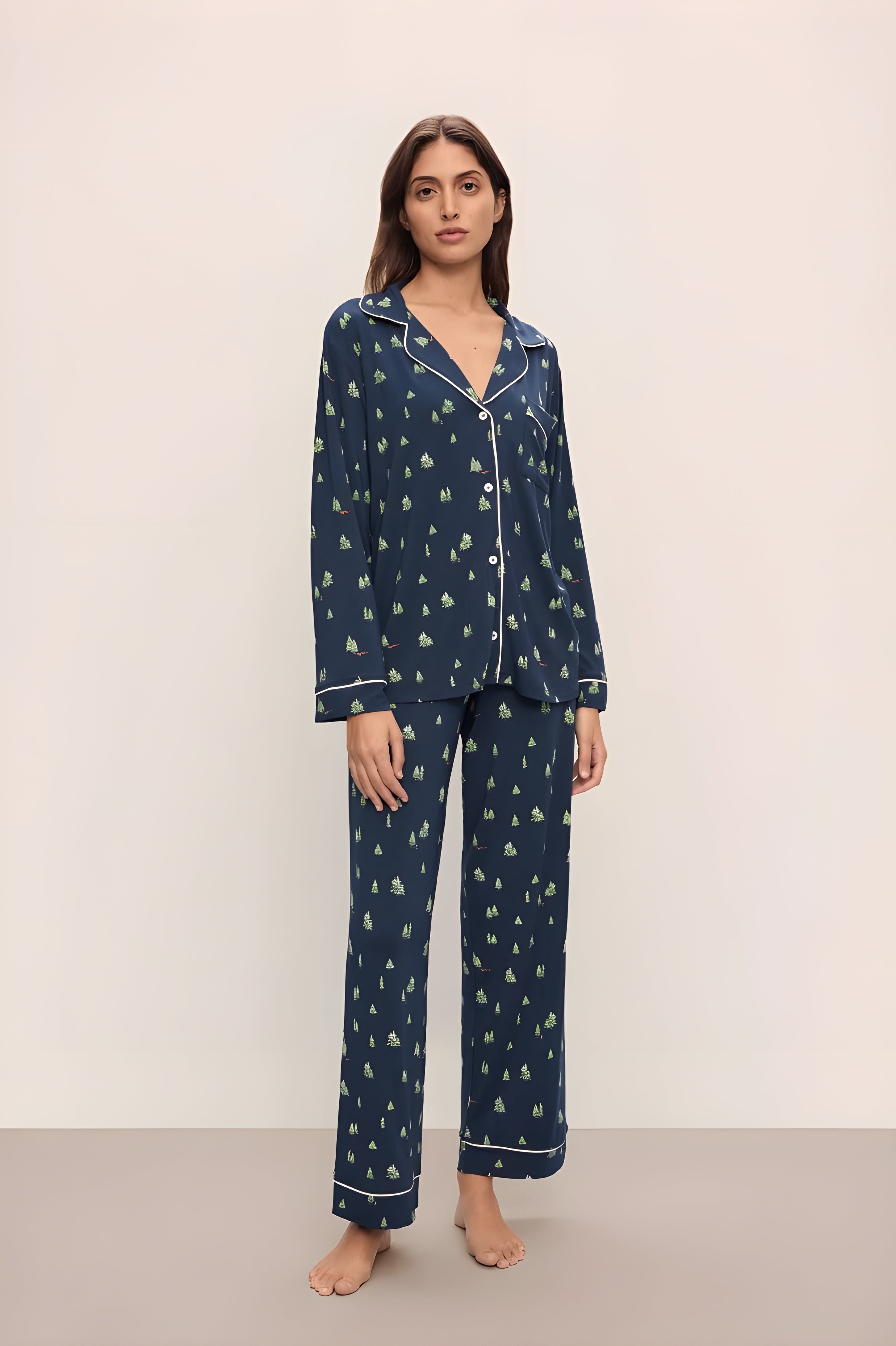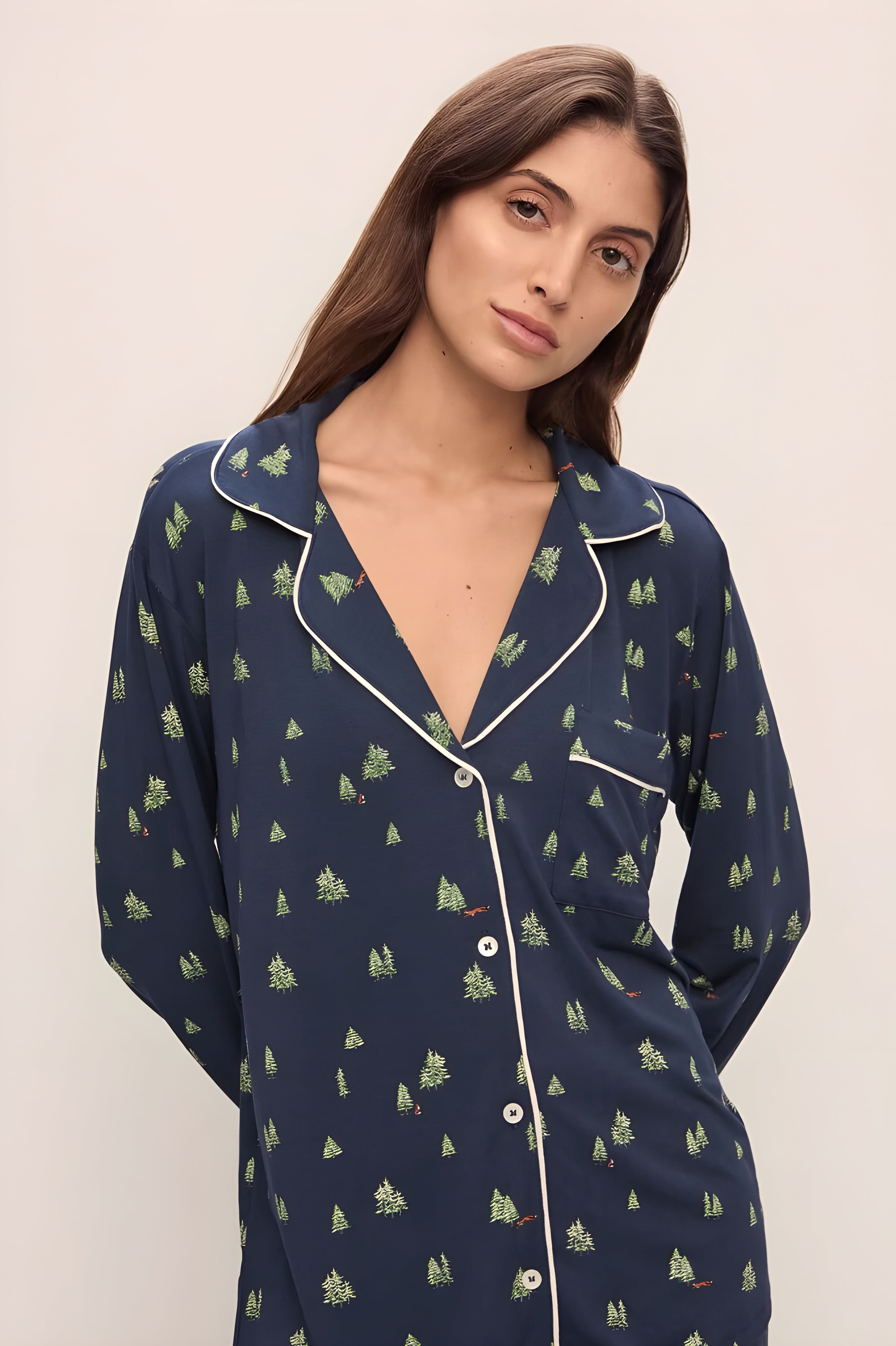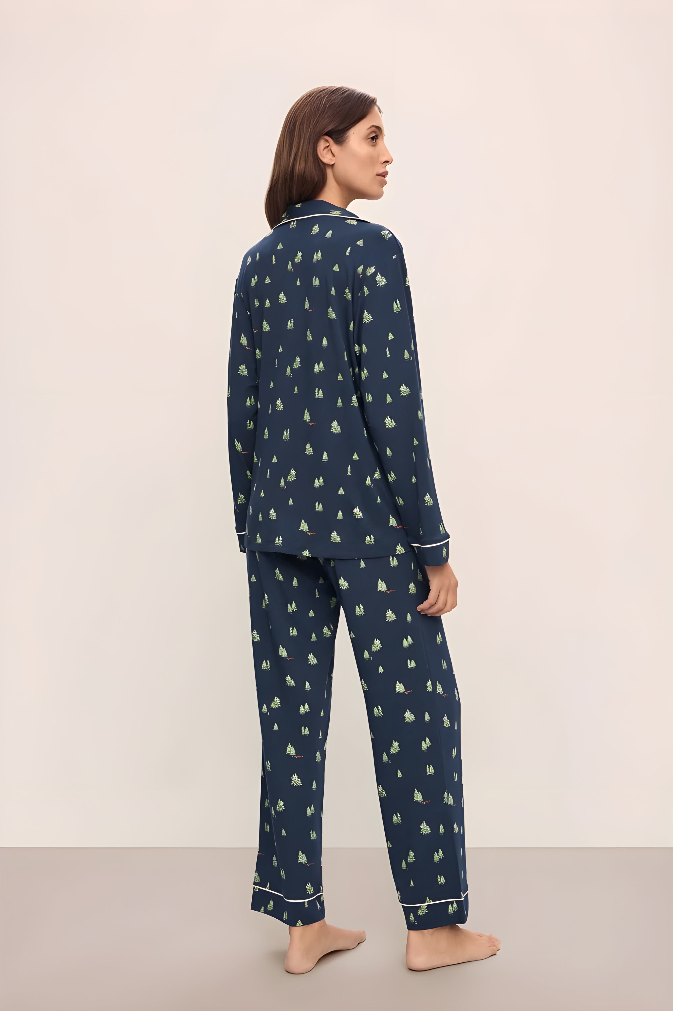 Gisele Printed TENCEL™ Modal Long PJ Set Woodland Pine Navy/Ivory