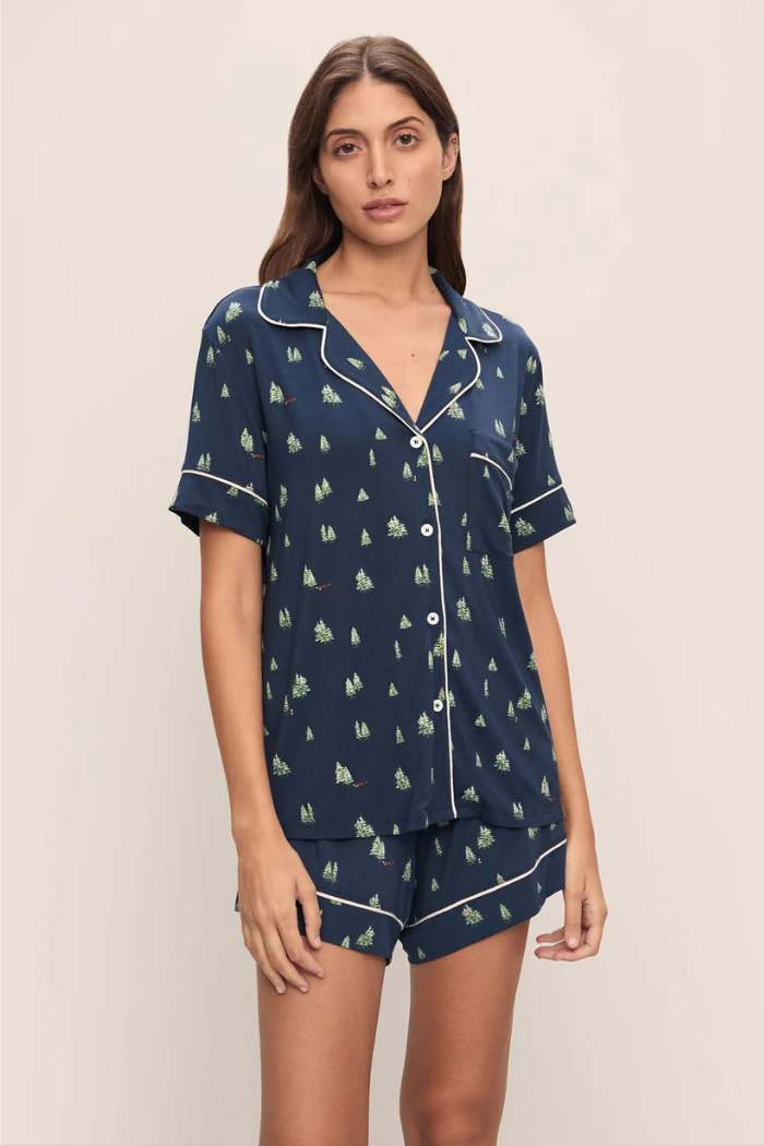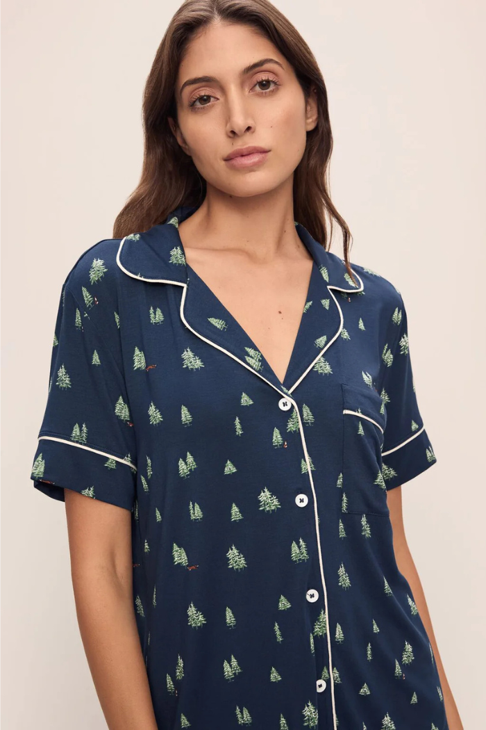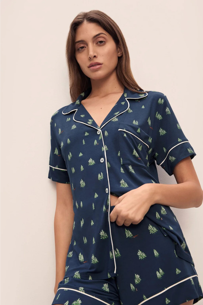 Gisele Printed TENCEL™ Modal Relaxed Short PJ Set Woodland Pine Navy/Ivory