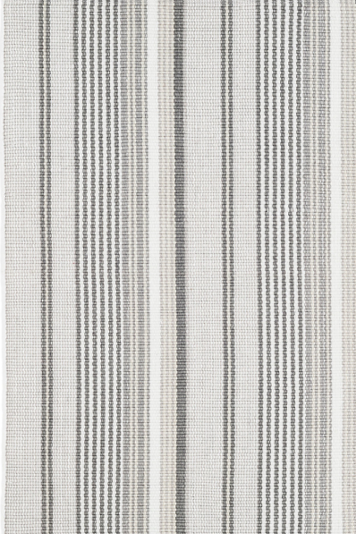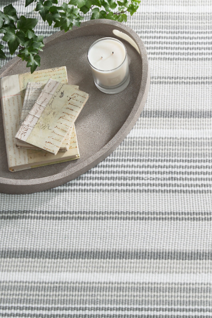 Classic ticking stripes in varied shades of grey make a sophisticated play on this machine-washable rug. It stands up to everyday elements in high style, and remains flat and soft underfoot, even after multiple washes.