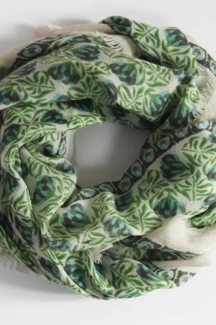 Our 100% wool scarves are crafted with exceptional quality, featuring a weave that offers both lightness and a wonderfully soft feel. The handmade printing creates rich, subtle colors.