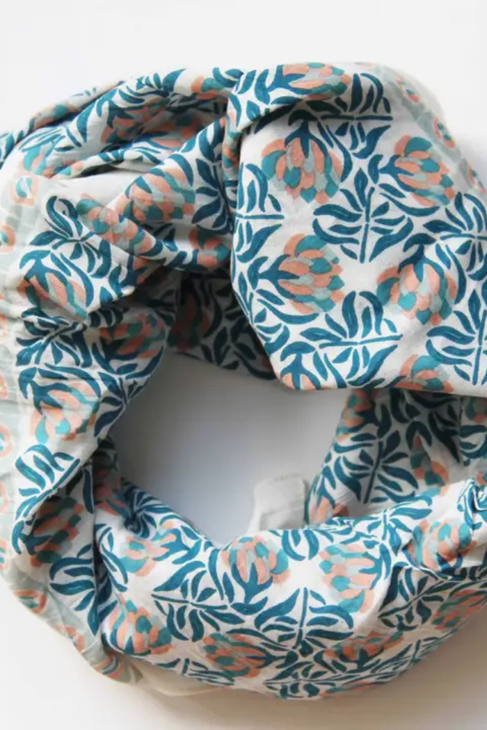 Our square organic cotton scarves are versatile, perfect for wearing as a scarf, a beach top, or even as a pirate-inspired accessory. The cotton quality is outstanding, offering a lightweight fabric with a soft, comfortable feel. The handmade printing creates rich, subtle colors.