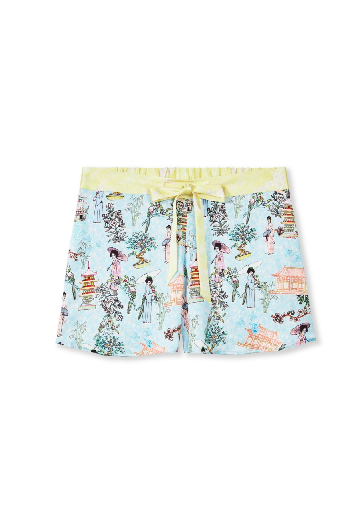 These classic chinoiserie PJ shorts from the Jessica Russell Flint sleepwear collection showcase the hand drawn "Story of the orient".