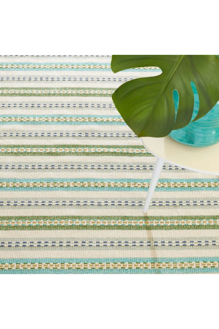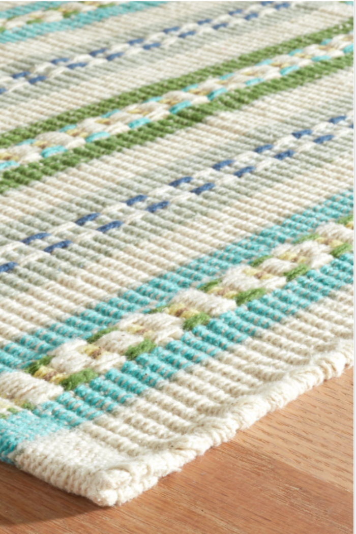 Long Slade Teal Handwoven Cotton Rug 2 x3