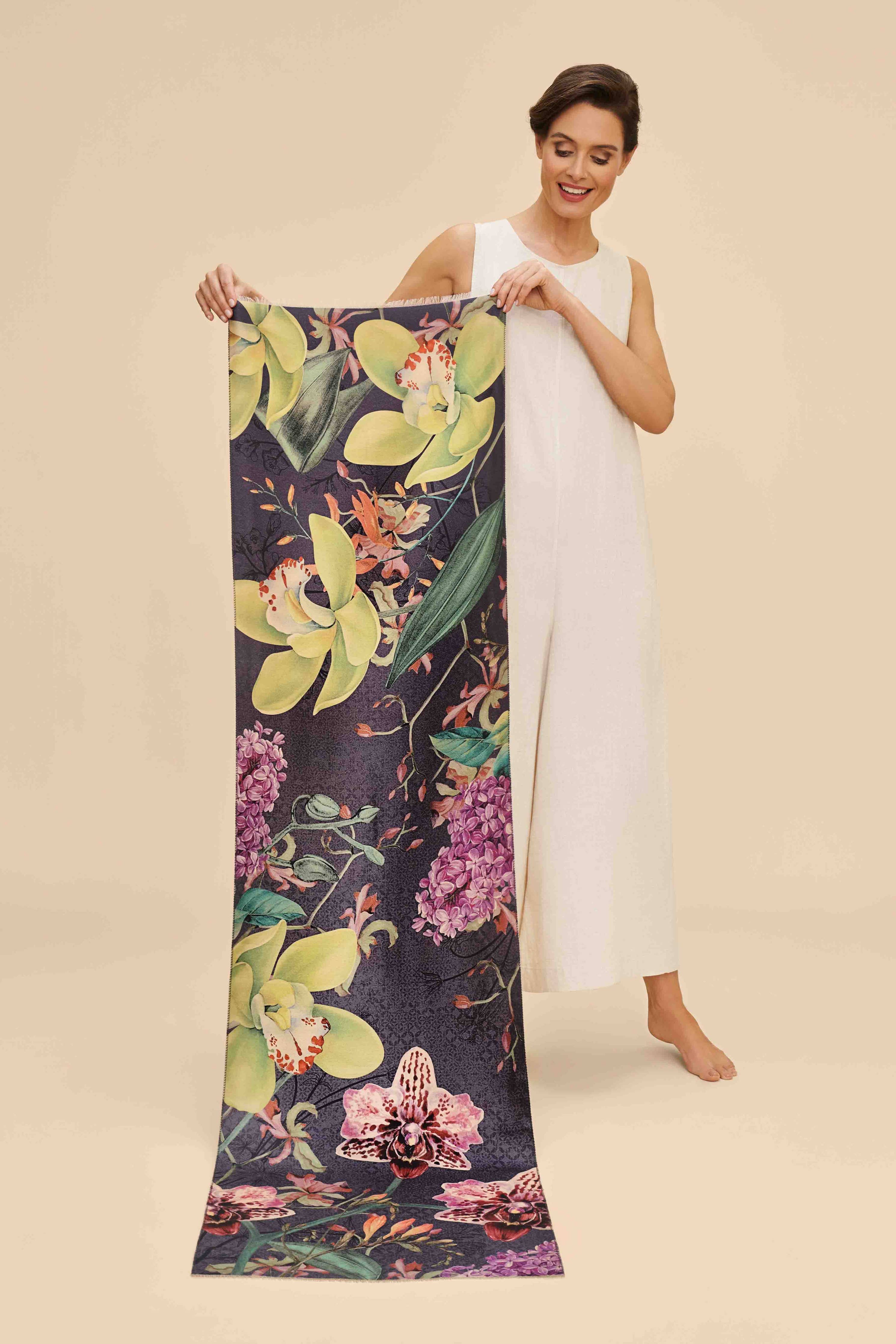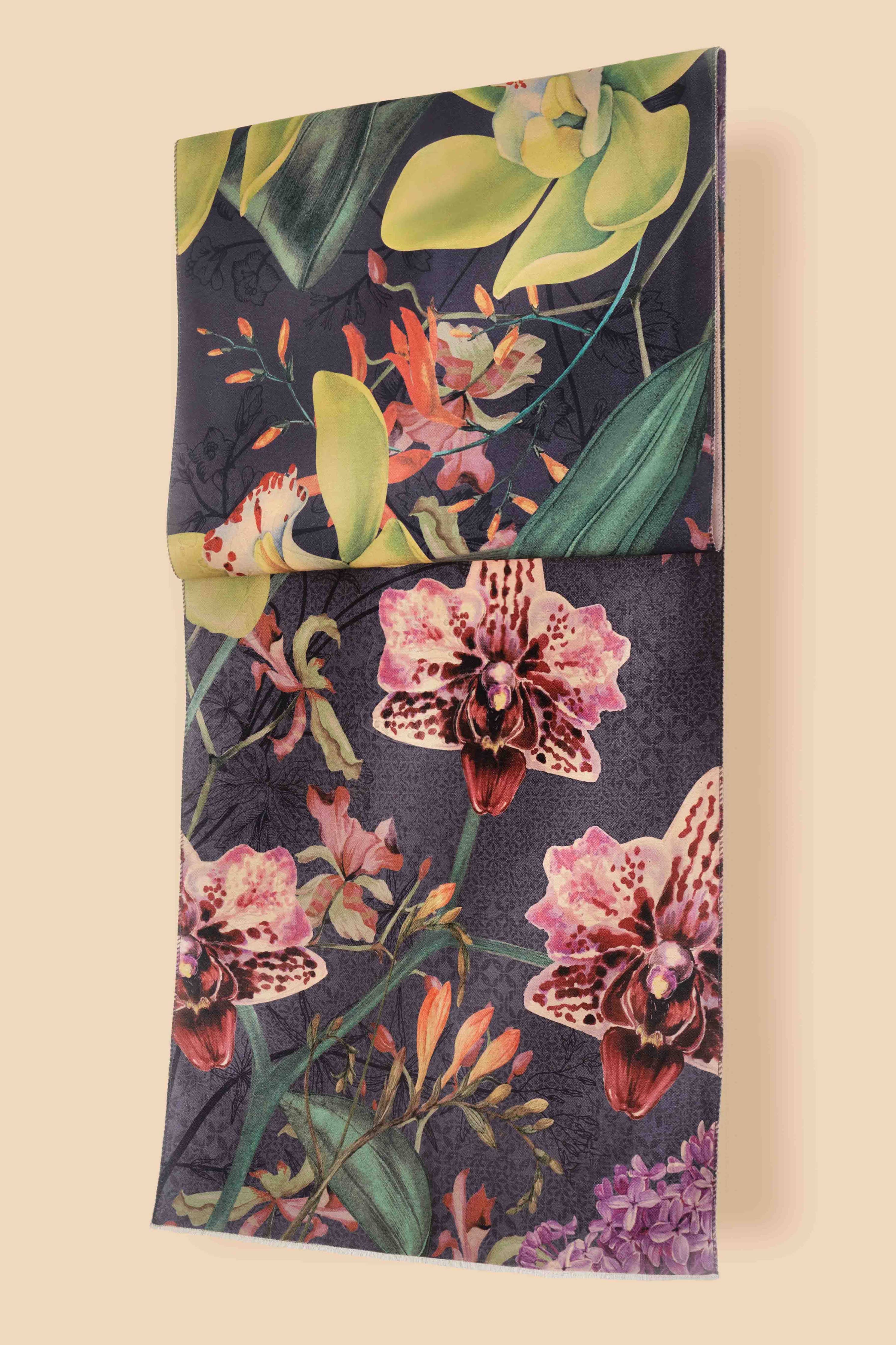Back by popular demand! Our glorious lux scarves offer sumptuous style with a gorgeous smooth texture and our bespoke Powder prints. The bright florals and inky palette on this design create fantastic depth which is sure to make this scarf a talking point. A complimentary gift back will make this the ideal gift!